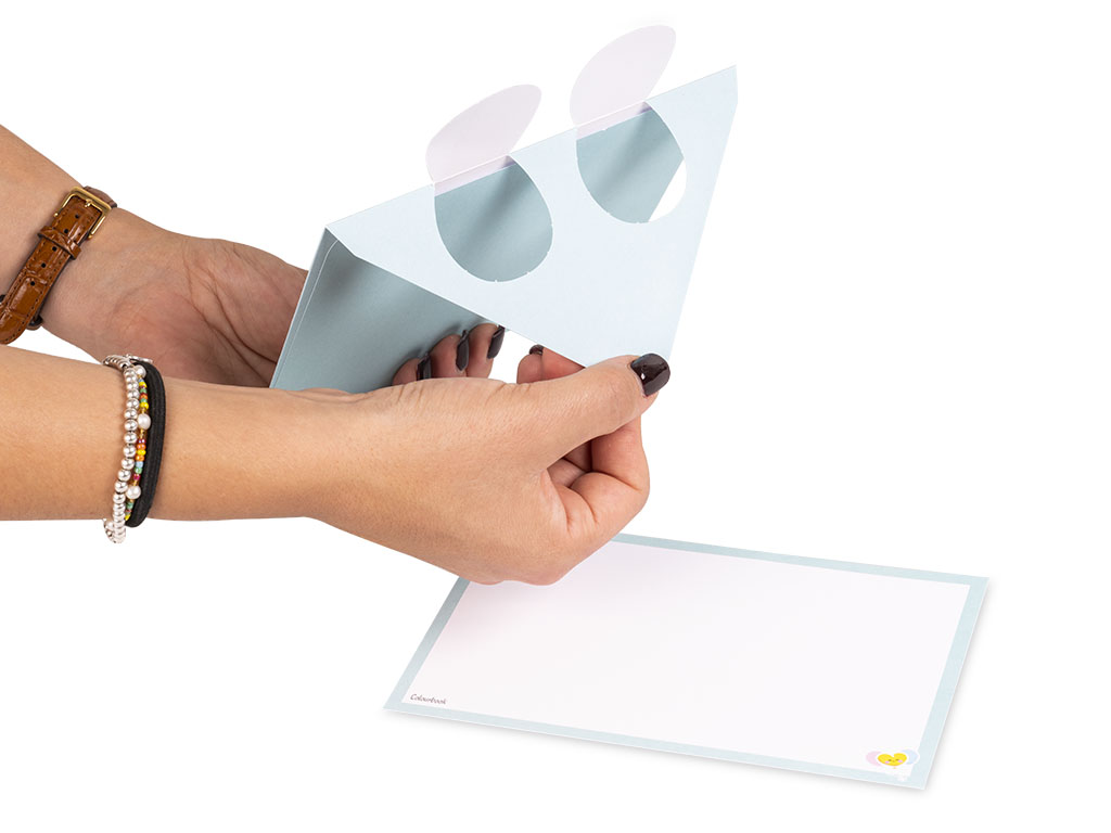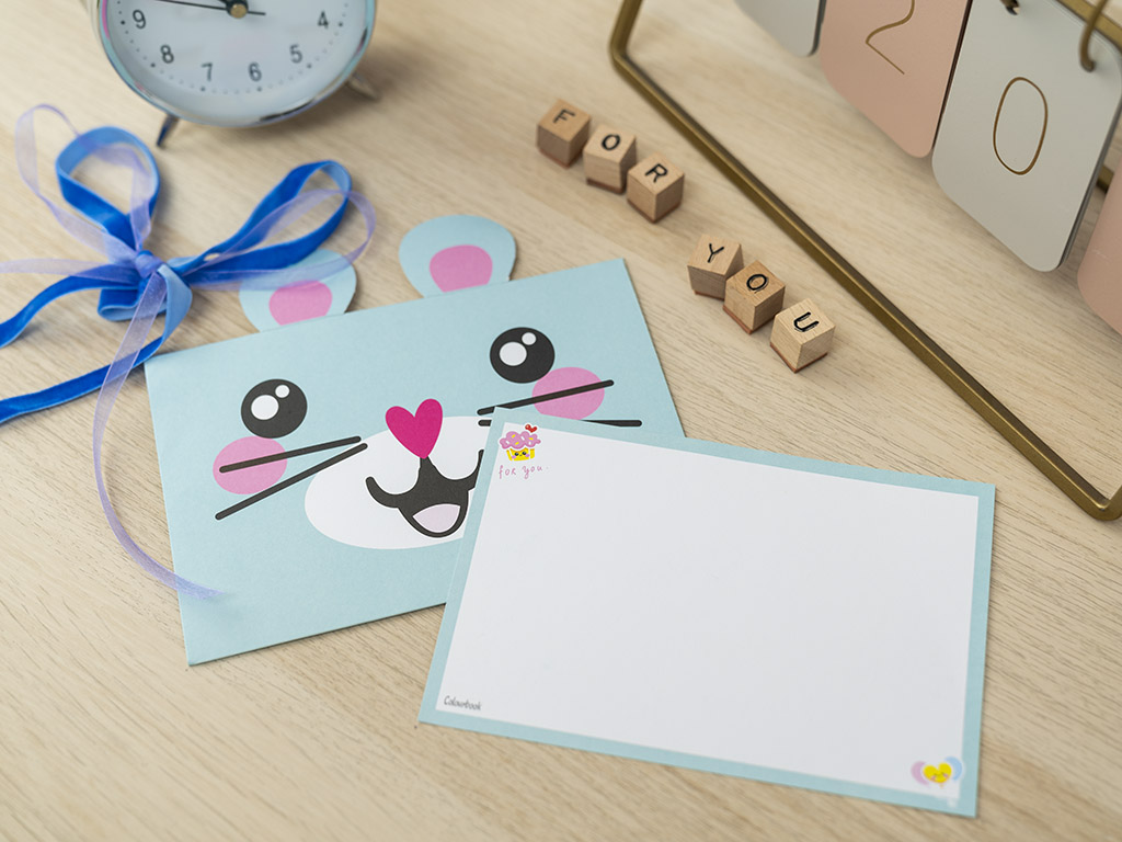 Questa busta fustellata con un tenero topino e le sue orecchie in vista, è foderata per proteggere il contenuto, e il biglietto interno permette di scrivere la propria dedica.