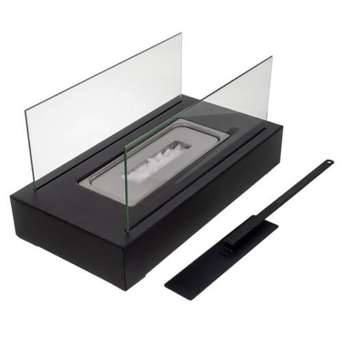 Include tutto il necessario per l’utilizzo immediato: serbatoio in acciaio con fibra ceramica assorbente per una combustione più duratura (fino a 60 minuti con 250 ml di bioetanolo). Montaggio semplice e veloce, senza bisogno di attrezzi. Protetto con schiuma per il trasporto sicuro e fondo antiscivolo per proteggere i mobili.