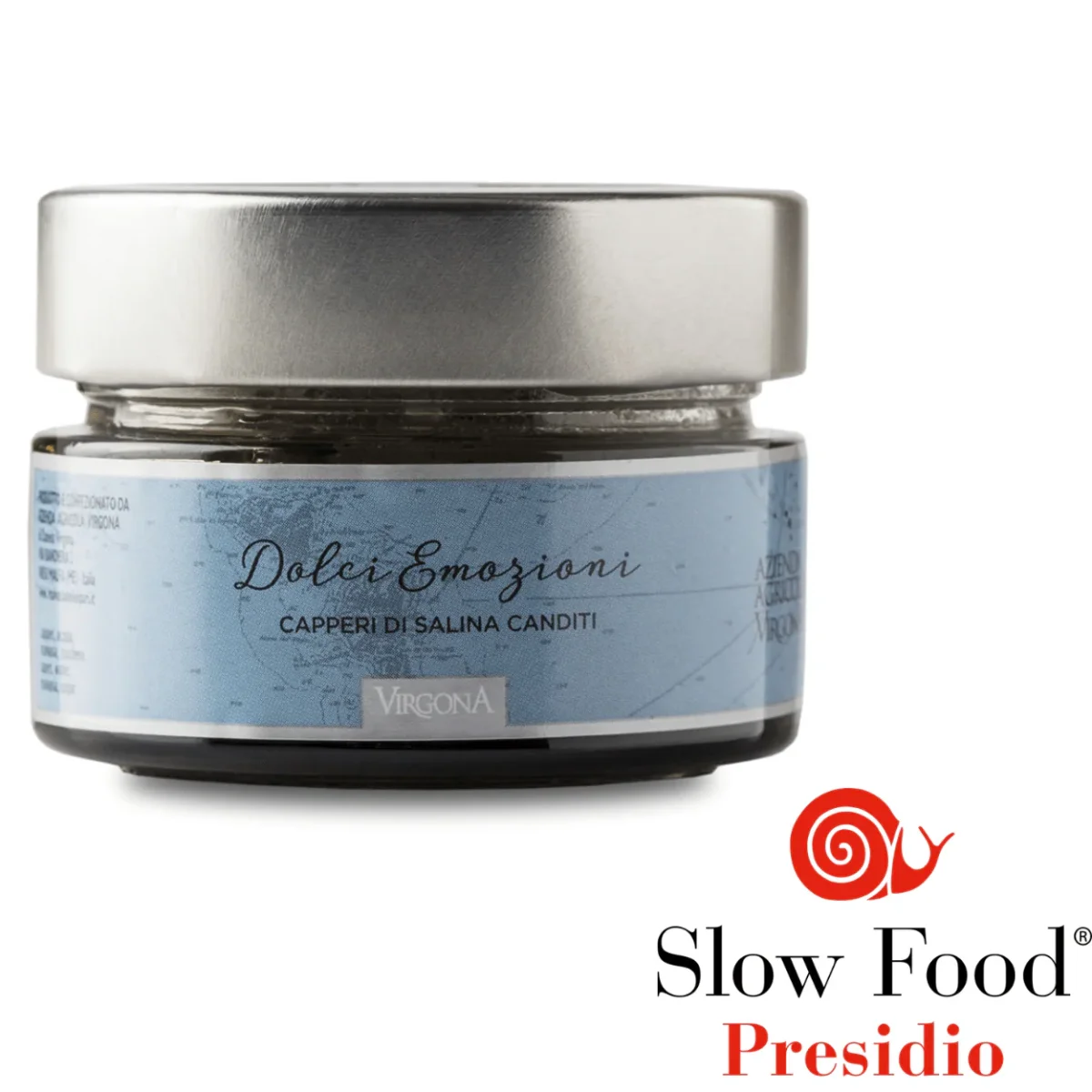 Perfetti per chi cerca un contrasto dolce‑salato raffinato, i capperi di Salina canditi dell’Azienda Agricola Virgona uniscono la naturale nota marina del bocciolo a una canditura delicata che ne esalta profumo e persistenza. Versatili e sorprendenti, impreziosiscono ricotta, creme e gelati, ma brillano anche con pesce, carpacci e formaggi erborinati, trasformando ogni piatto in un’esperienza gourmet. Usati a fine preparazione in piccole dosi mantengono croccantezza e aromaticità, con un abbinamento classico nella Malvasia delle Lipari per equilibrio e intensità. Ideali per dare un twist elegante a insalate, salse agrumate e panificati gastronomici, valorizzano le tradizioni eoliane con una firma moderna.