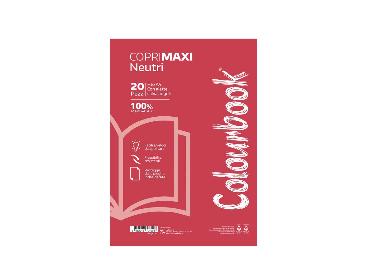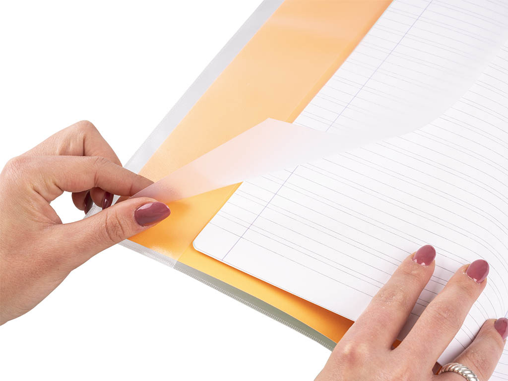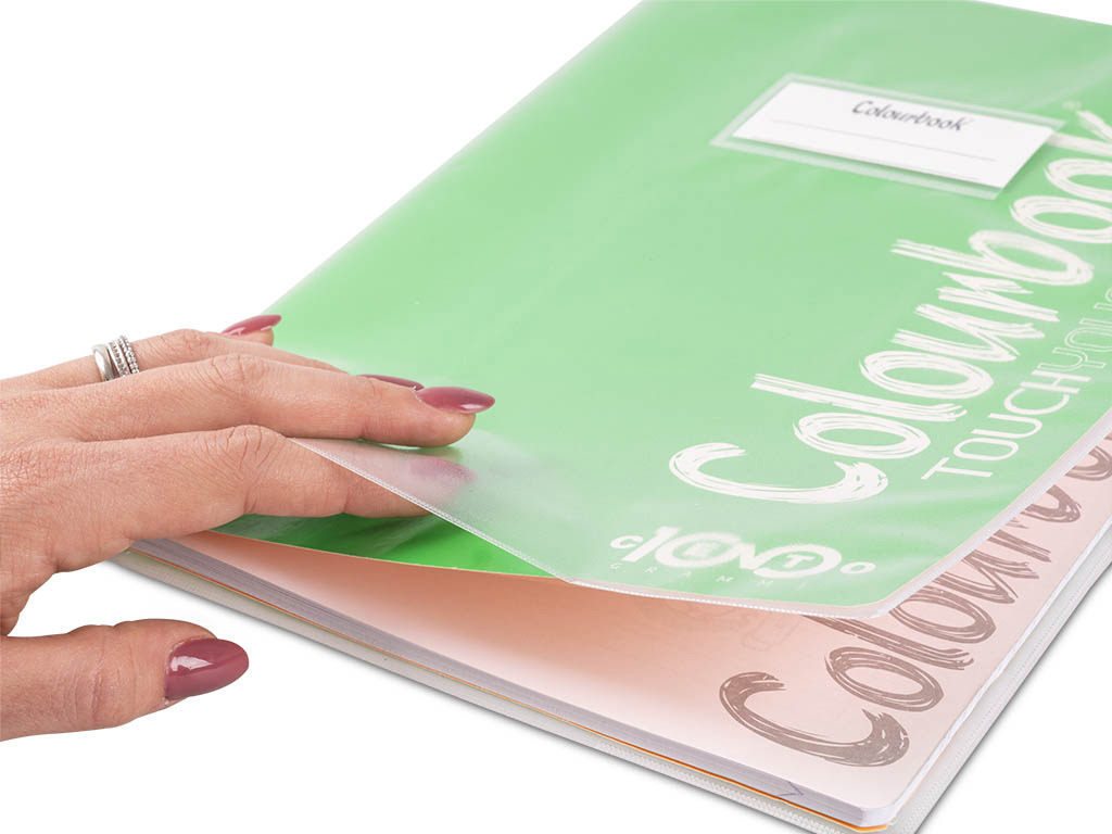 Copri i tuoi quaderni A4 con il copriquaderno trasparente Colourbook: con finitura opaca, alette ripiegate e tasche interne.