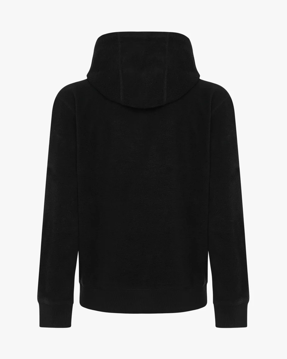 Felpa Teddy con cappuccio e micrologo ricamato al centro tono su tono. Fondo e polsini a coste.