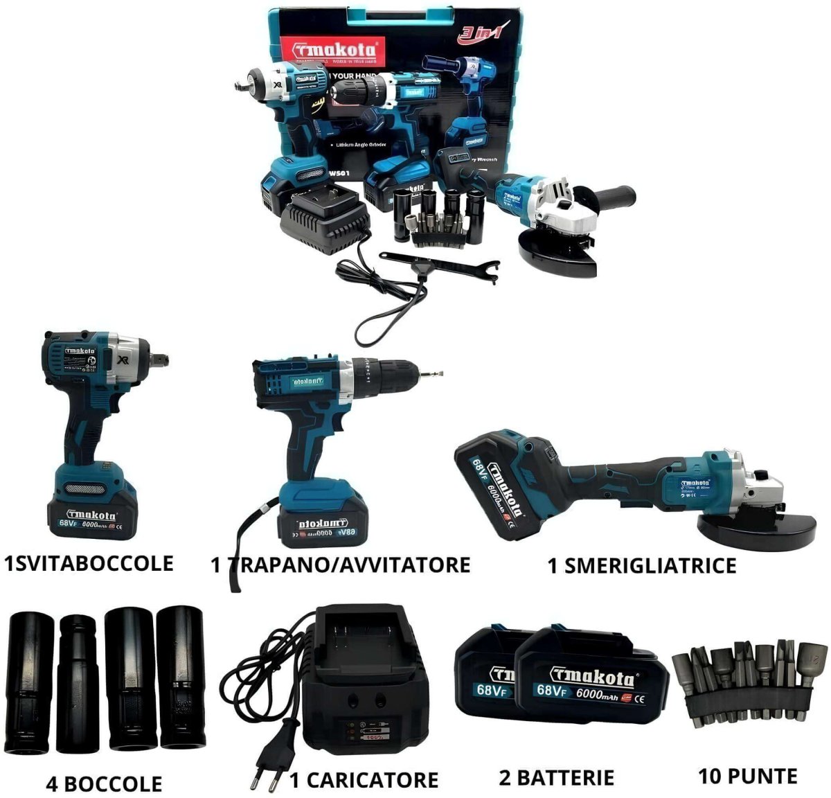 Affronta qualsiasi sfida con fiducia grazie al nostro kit 3 in 1 Trapano Avvitatore e Smerigliatrice a Batteria 68V. Ideale per professionisti e hobbisti, questo set ti offre la potenza e la versatilità necessarie per portare a termine ogni progetto con successo. Non lasciarti sfuggire questa occasione e aggiungilo al carrello ora!