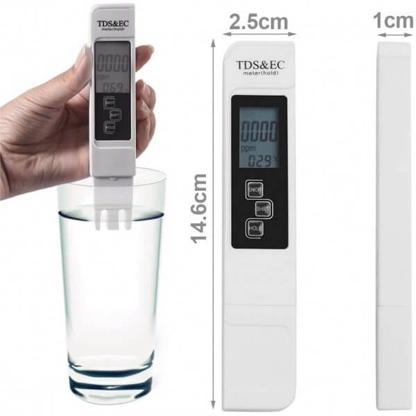 - TDS: 0 ~ 9990PP, EC: 0 ~ 9990μs / cm