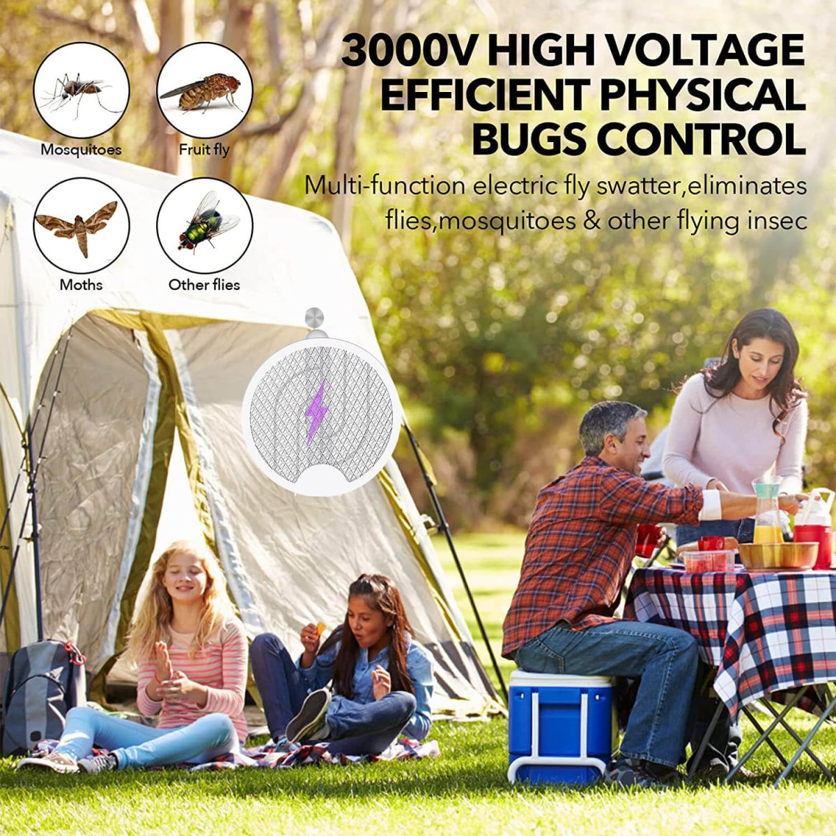 ⚡ MODALITA’ DI UTILIZZO E GIREVOLE È possibile utilizzare la racchetta zanzare elettrica manualmente o attivando la modalità di luce viola automatica. La racchetta zanzare elettrica ha luce UV che attira le zanzare, le mosche e gli insetti successivamente la racchetta elettrica li uccida automaticamente. Attiva la modalità automatica di controllo delle zanzare durante il sonno e non sarai mai più infastidito dalle zanzare!  Questa racchetta zanzara è progettata per ripiegarsi, rendendola facile da riporre e trasportare al campeggio o ambienti all’aperto.