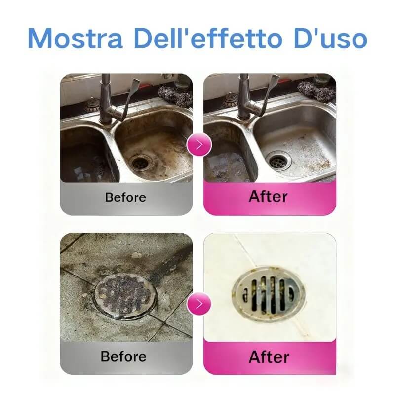 La schiuma attiva è studiata per affrontare una vasta gamma di residui che si accumulano nelle tubature. Grazie alla sua potente azione sgrassante, rimuove facilmente non solo capelli e sapone, ma anche grasso, carta, residui di alimenti e altri detriti che compromettono il normale flusso delle acque. Perfetto per l’uso in cucina, bagno e lavanderia.