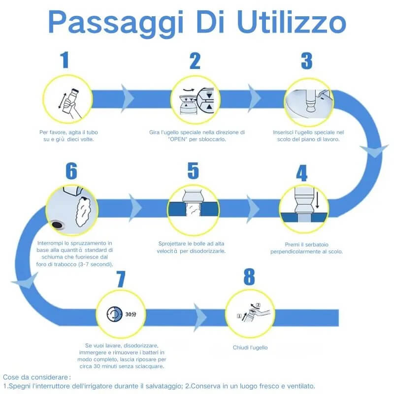 Pur essendo estremamente efficace, la schiuma attiva è sicura per tutte le tubature domestiche, inclusi sistemi in PVC, metallo e ceramica. Non danneggia le superfici e non lascia residui aggressivi. È un alleato sicuro per mantenere le tue tubature sempre libere da intasamenti, senza compromettere la loro integrità.