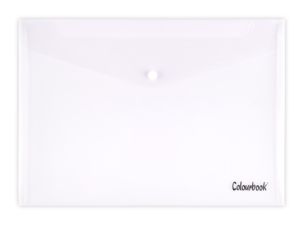 Le buste con bottone Colourbook sono realizzate in plastica resistente e trasparente.