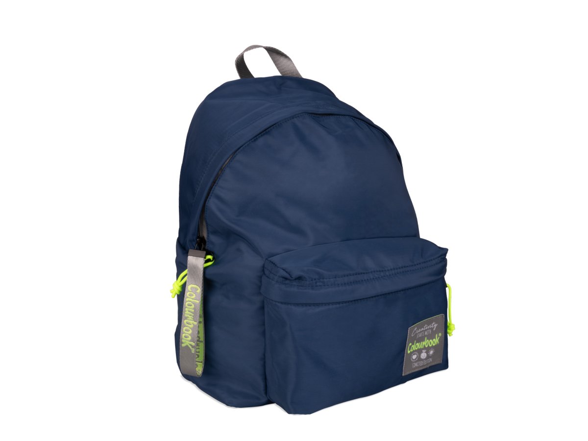 Il design minimalista è arricchito dai dettagli giallo fluo, come il cordoncino tirazip della tasca principale e della pratica tasca anteriore, su cui è riportata anche l’etichetta “Colourbook Limited Edition”.